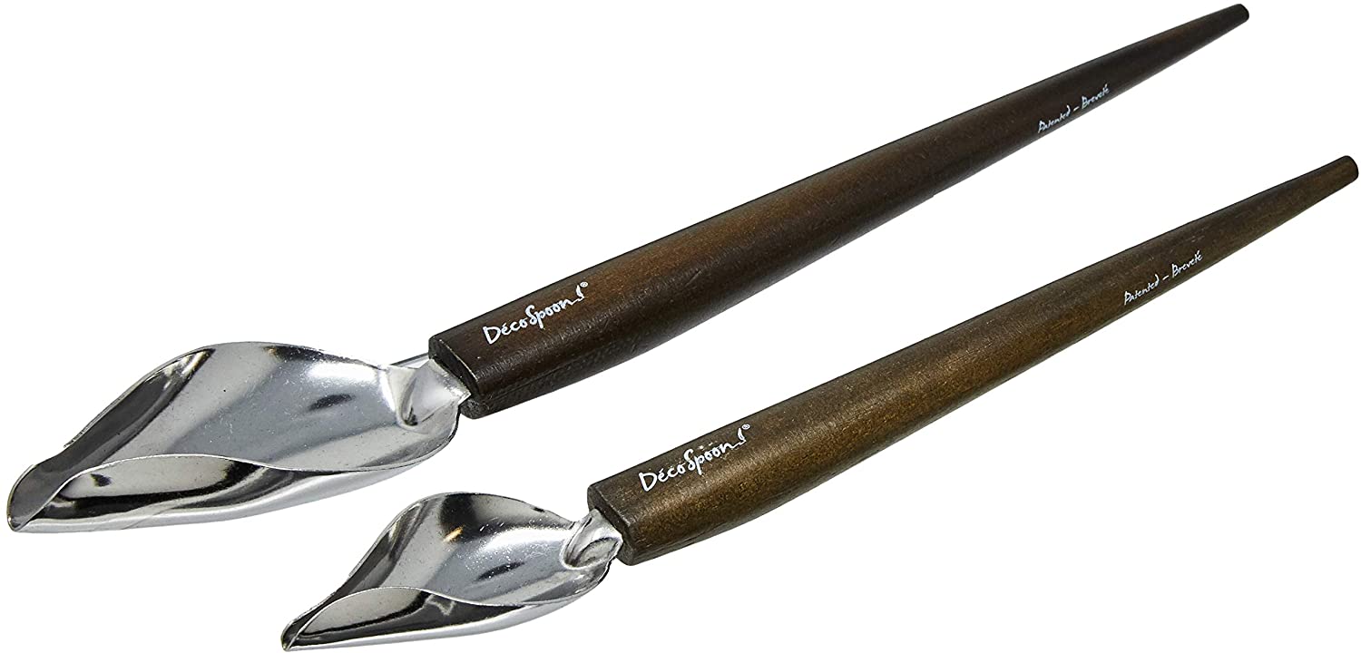 Set de cucharas decoradoras de acero inoxidable, con punta cónica para mayor precisión.